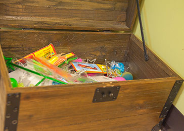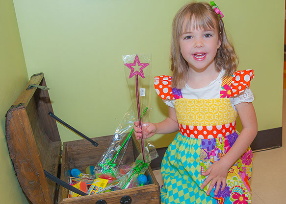 At the conclusion of the visit, each child will receive a prize from the treasure chest, stickers, and praise for the things they accomplished. We work hard to reinforce positive behaviors and create an overall fun experience for every patient at the end of the first visit.